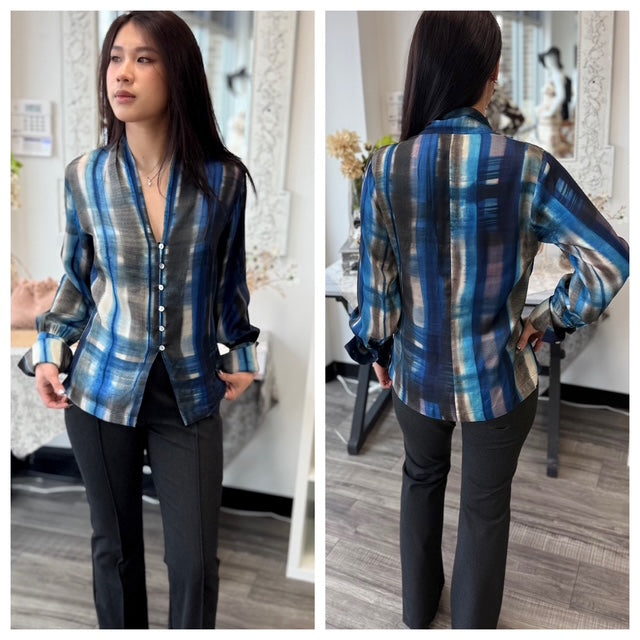 Watercolor Satin Print Blouse