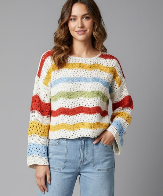 MULTI COLORED CROCHET SWEATER