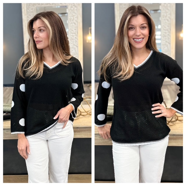 Polka Dot Sleeve Mesh Sweater