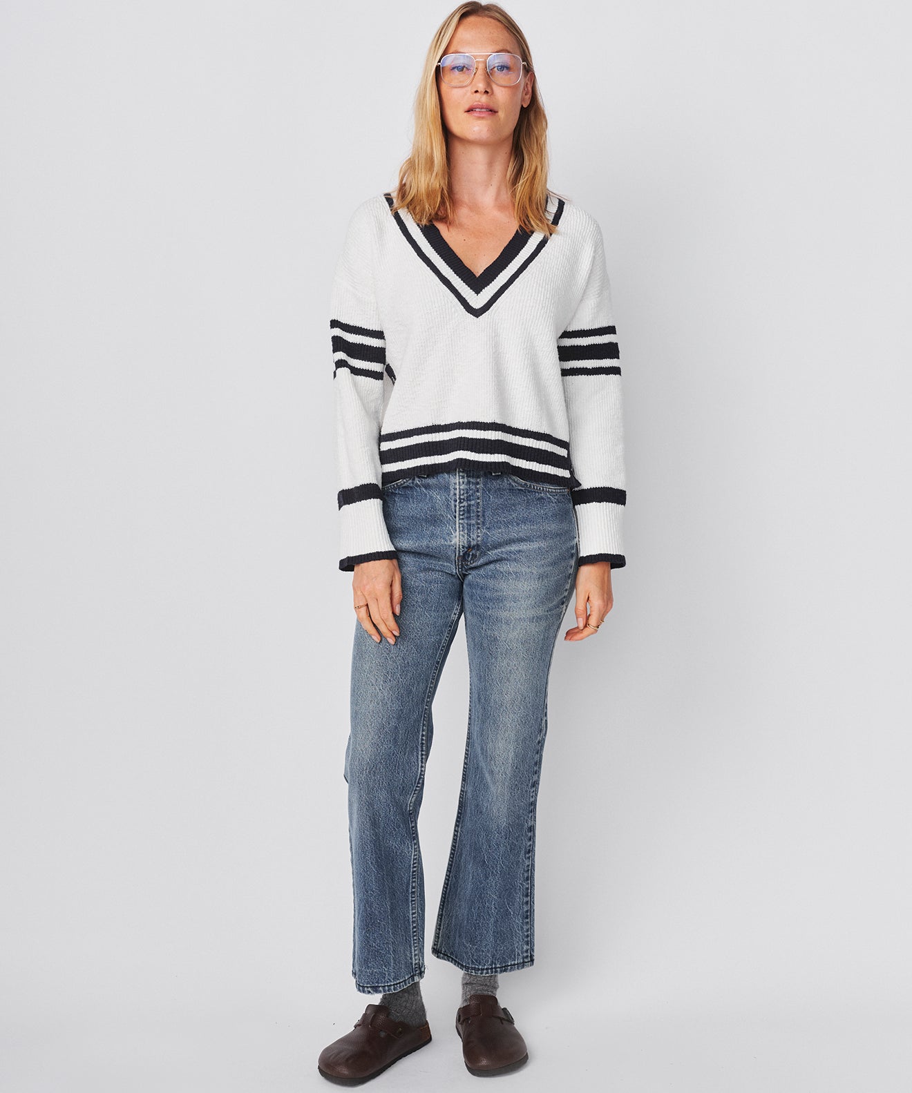 V NECK STRIPPED SWEATER